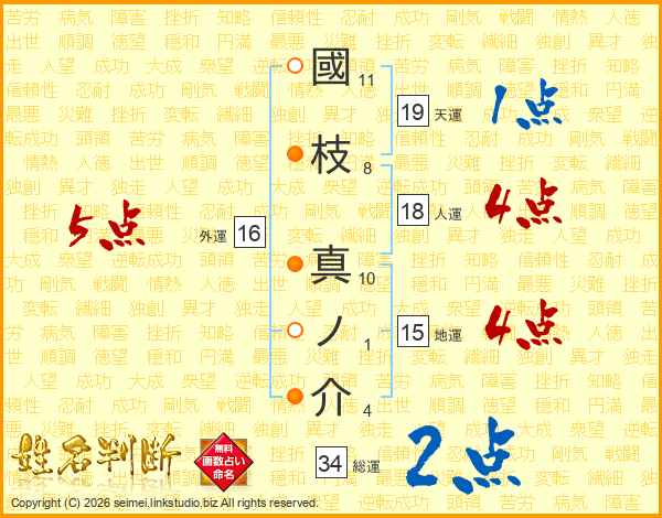 國(11画)枝(8画) 真(10画)ノ(1画)介(4画)