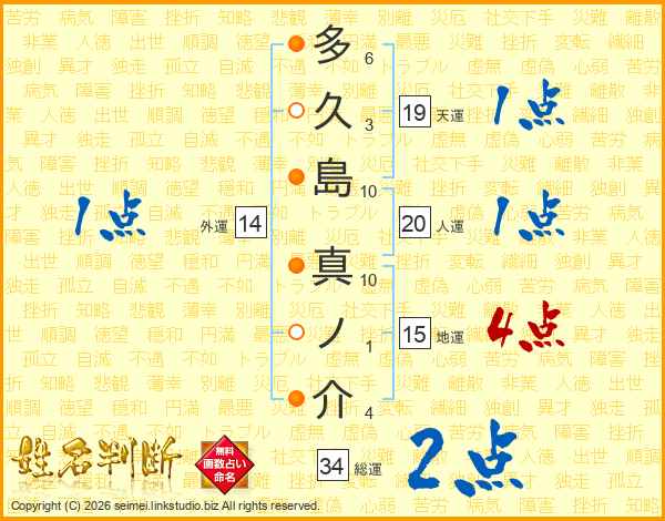多久島真ノ介さんの総運は34画の2点!