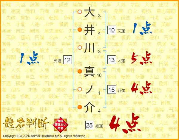 大井川真ノ介さんの総運は25画の4点!