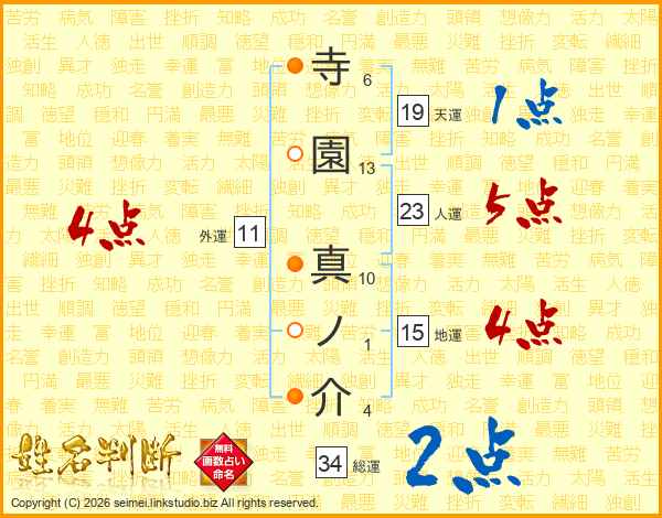 寺園真ノ介さんの総運は34画の2点!