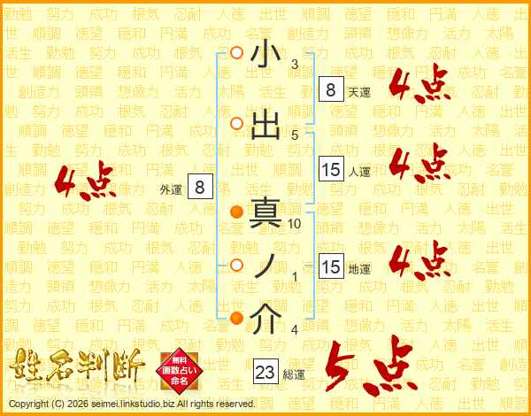 小出真ノ介さんの総運は23画の5点!