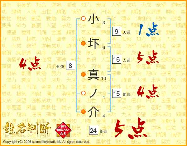 小圷真ノ介さんの総運は24画の5点!