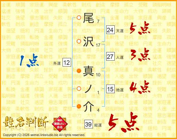 尾沢真ノ介さんの総運は39画の5点!