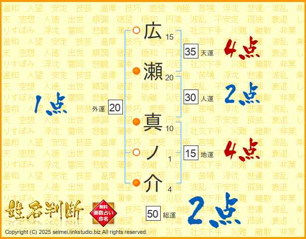 広(15画)瀬(20画) 真(10画)ノ(1画)介(4画)