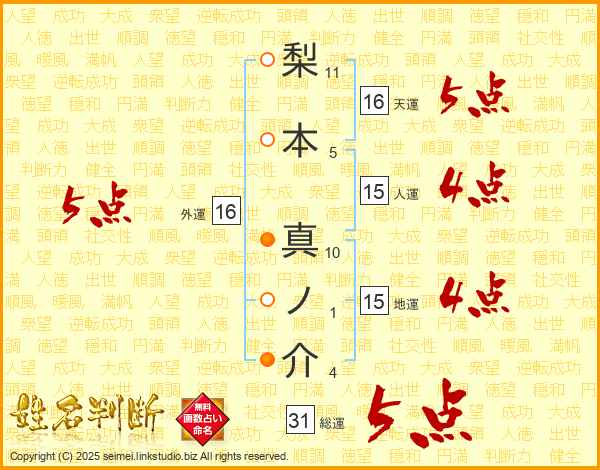 梨本真ノ介さんの総運は31画の5点!