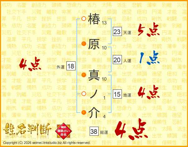 椿原真ノ介さんの総運は38画の4点!