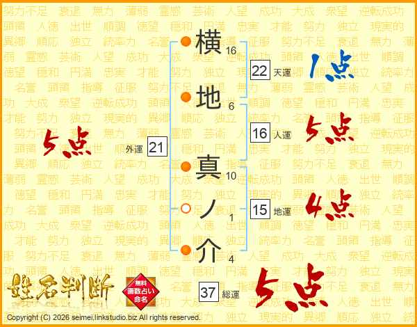 横(16画)地(6画) 真(10画)ノ(1画)介(4画)