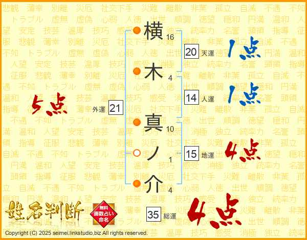 横(16画)木(4画) 真(10画)ノ(1画)介(4画)