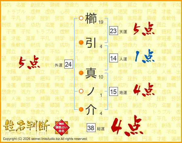 櫛引真ノ介さんの総運は38画の4点!
