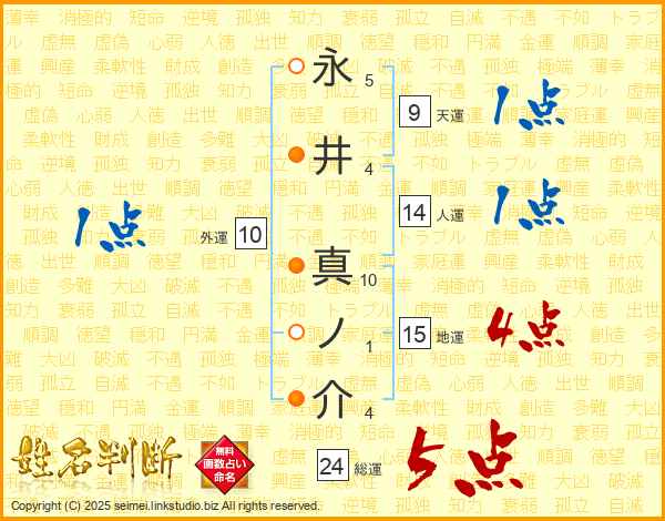 永(5画)井(4画) 真(10画)ノ(1画)介(4画)