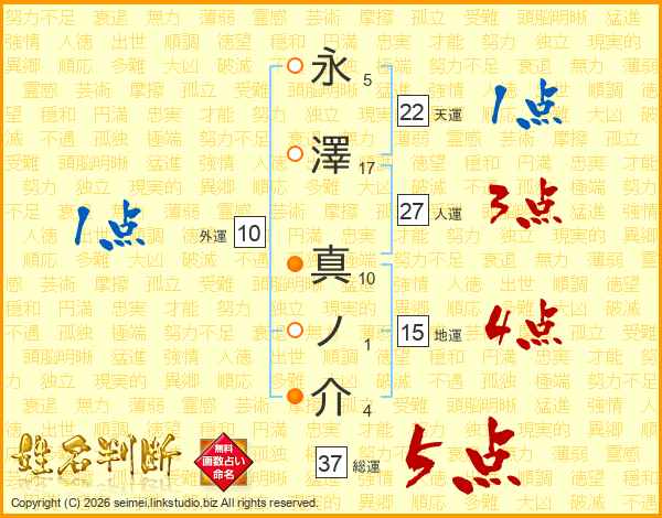 永澤真ノ介さんの総運は37画の5点!
