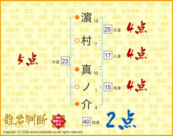 濵(18画)村(7画) 真(10画)ノ(1画)介(4画)