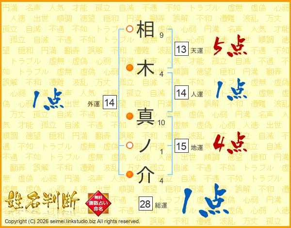 相(9画)木(4画) 真(10画)ノ(1画)介(4画)