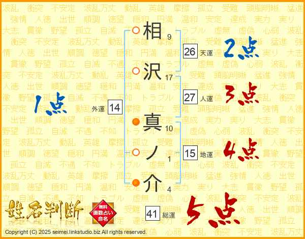 相(9画)沢(17画) 真(10画)ノ(1画)介(4画)