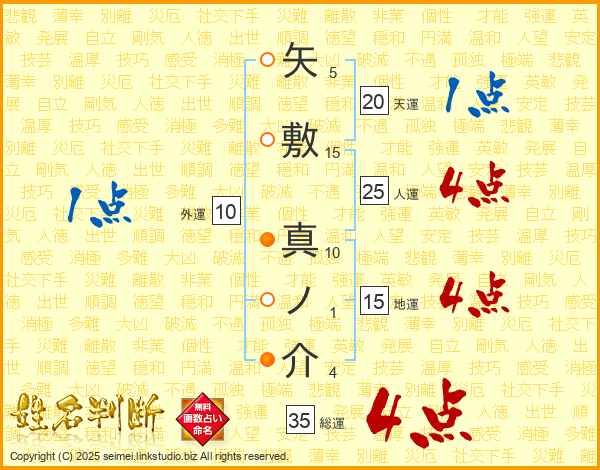矢(5画)敷(15画) 真(10画)ノ(1画)介(4画)