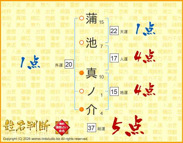 蒲池真ノ介さんの総運は37画の5点!