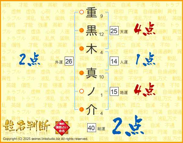 重黒木真ノ介さんの総運は40画の2点!