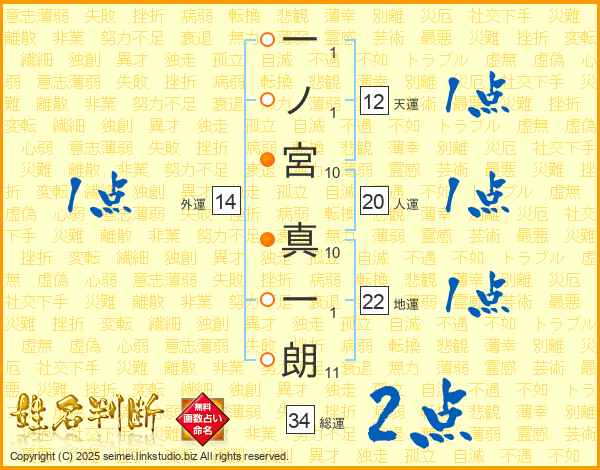 一ノ宮真一朗さんの総運は34画の2点!