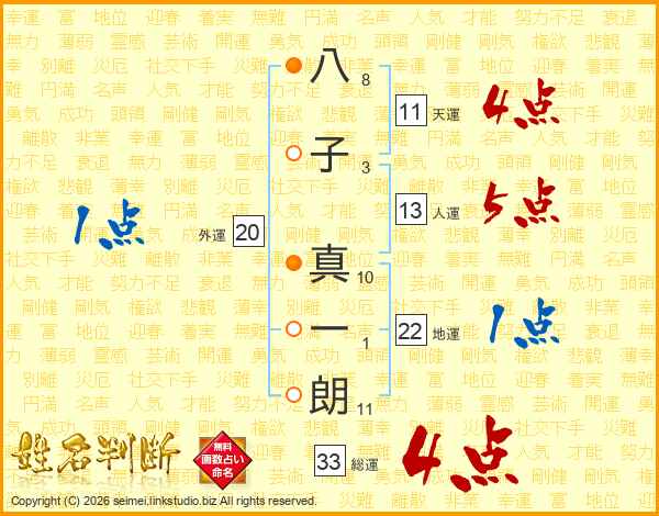 八子真一朗さんの総運は33画の4点!