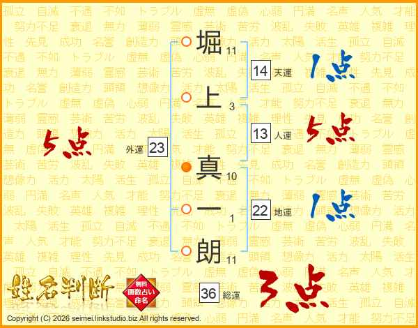 堀上真一朗さんの人運は13画の5点!