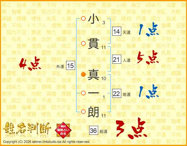 小貫真一朗さんの人運は21画の5点!