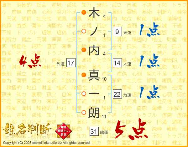 木ノ内真一朗さんの外運は17画の4点!