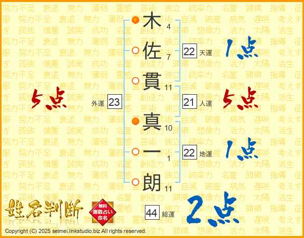 木佐貫真一朗さんの総運は44画の2点!