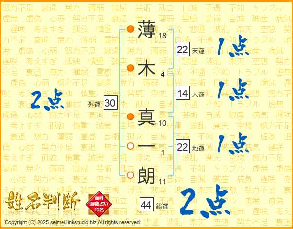 薄(18画)木(4画) 真(10画)一(1画)朗(11画)