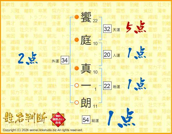 饗(22画)庭(10画) 真(10画)一(1画)朗(11画)