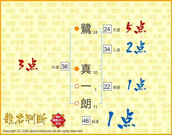 鷺(24画) 真(10画)一(1画)朗(11画)