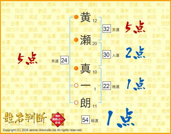 黄瀬真一朗さんの天運は32画の5点!
