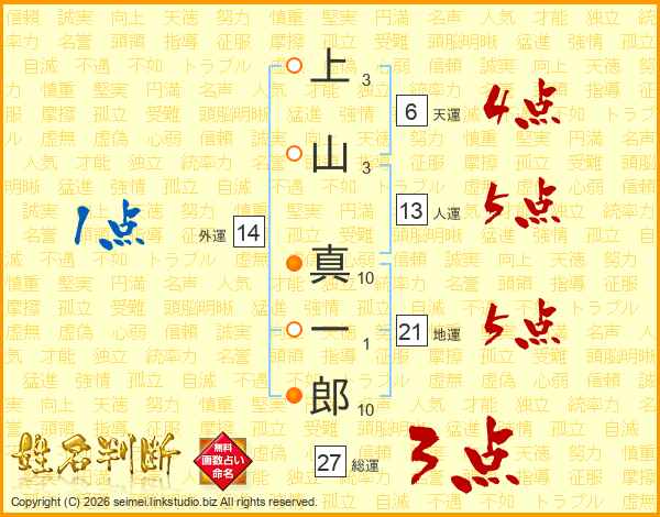 上山真一郎さんの人運は13画の5点!