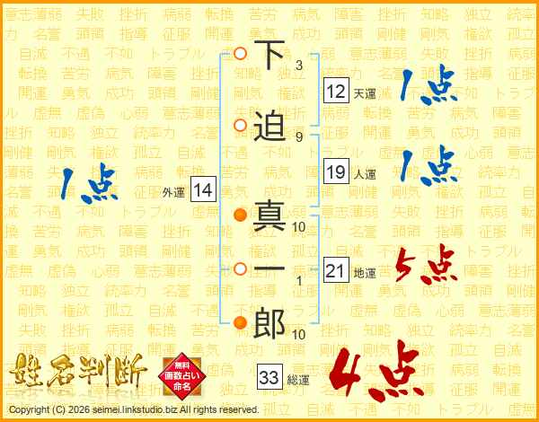 下迫真一郎さんの総運は33画の4点!