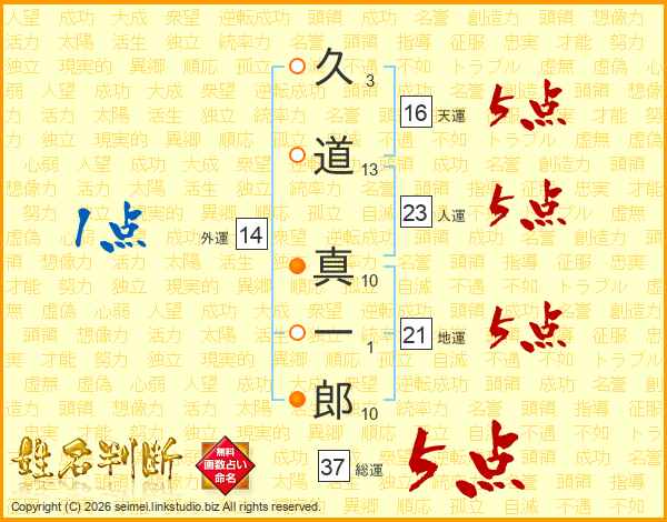 久道真一郎さんの総運は37画の5点!