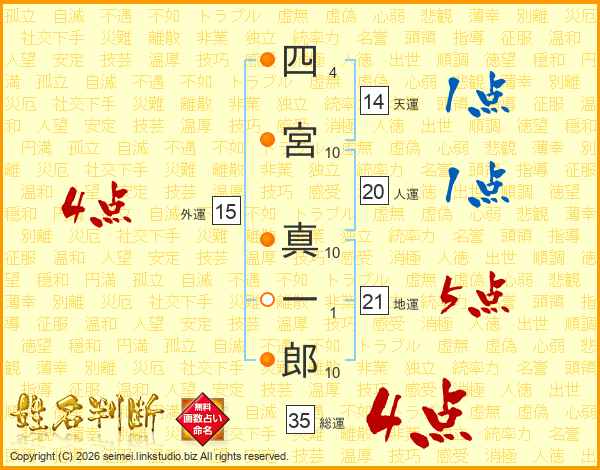 四宮真一郎さんの総運は35画の4点!