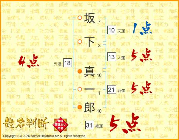 坂下真一郎さんの総運は31画の5点!