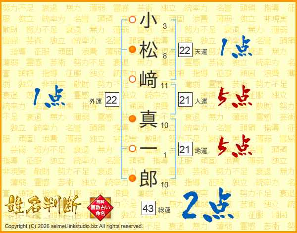 小松﨑真一郎さんの総運は43画の2点!