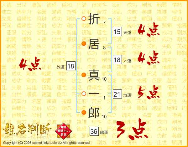 折(7画)居(8画) 真(10画)一(1画)郎(10画)