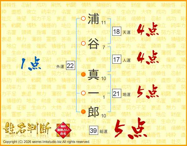 浦(11画)谷(7画) 真(10画)一(1画)郎(10画)