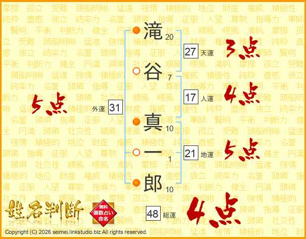 滝谷真一郎さんの総運は48画の4点!