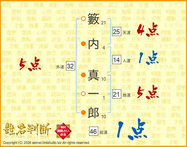 籔内真一郎さんの総運は46画の1点!