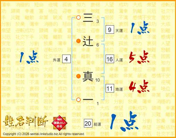 三辻真一さんの地運は11画の4点!