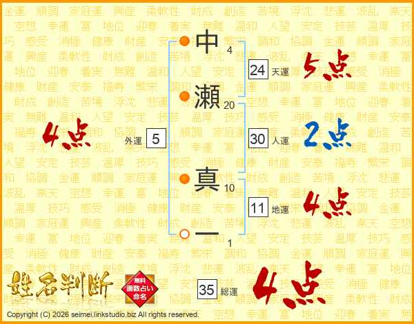 中瀬真一さんの総運は35画の4点!