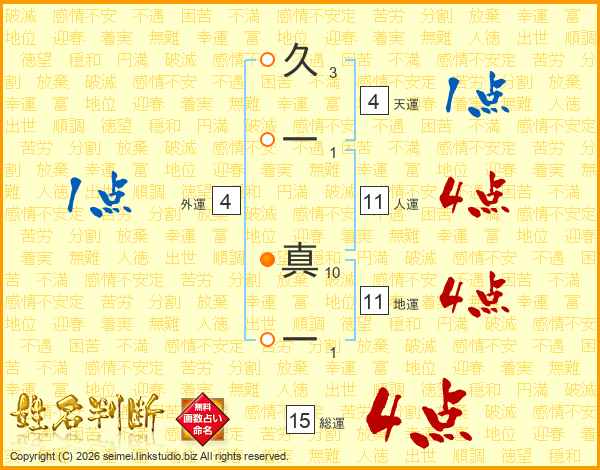 久一真一さんの人運は11画の4点!