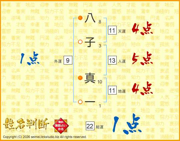 八子真一さんの総運は22画の1点!