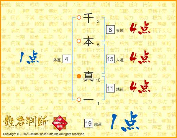 千本真一さんの総運は19画の1点!