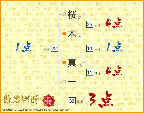 桜木真一さんの天運は25画の4点!