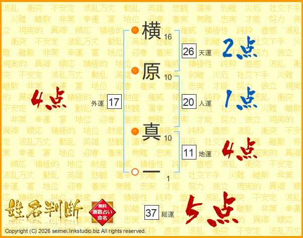 横原真一さんの総運は37画の5点!