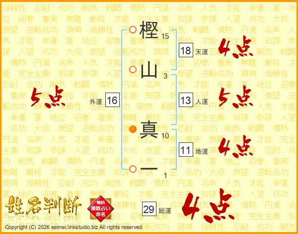 樫山真一さんの総運は29画の4点!