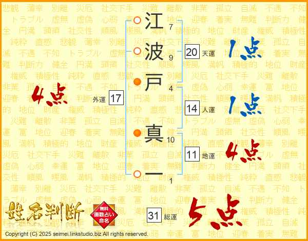 江(7画)波(9画)戸(4画) 真(10画)一(1画)